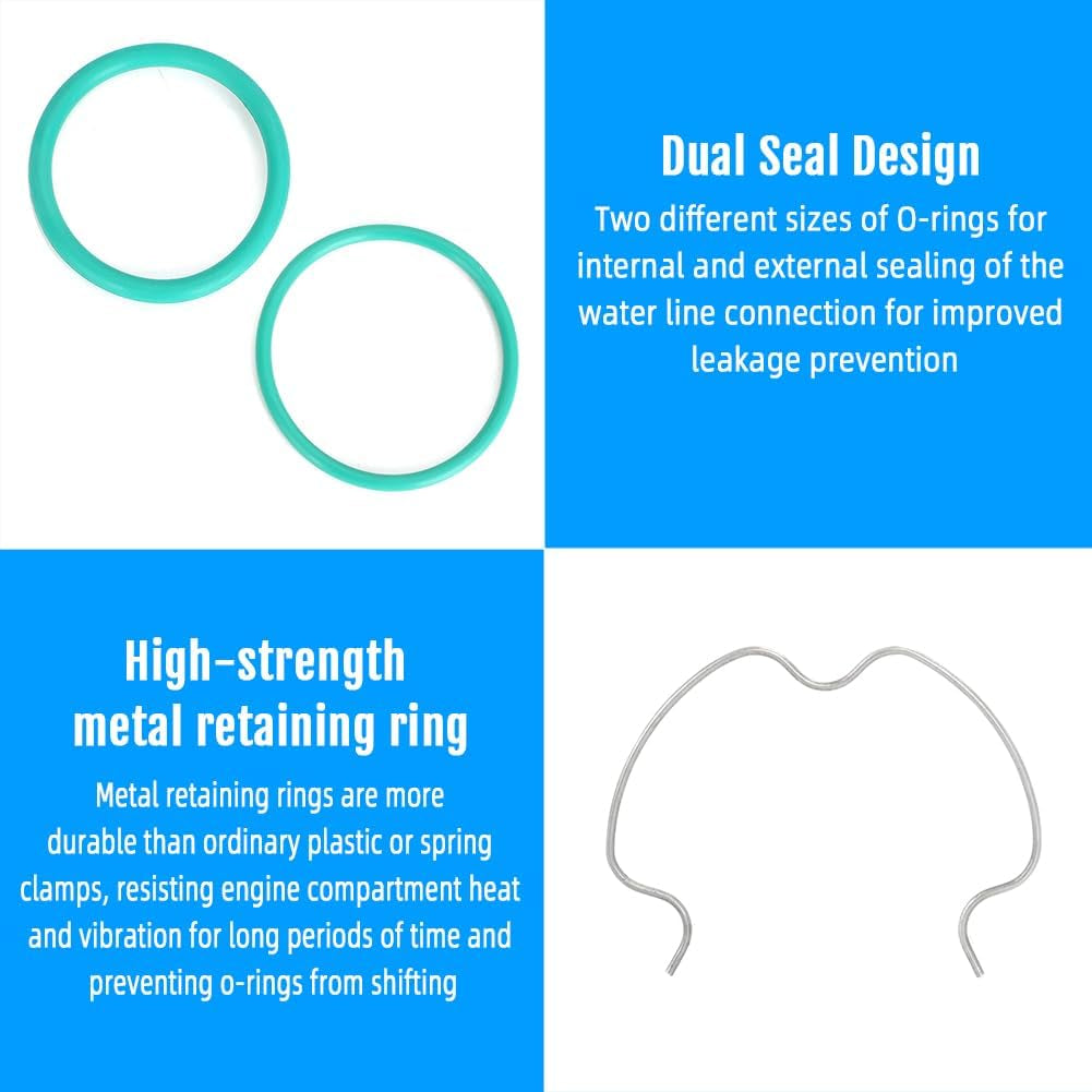 - 【Function】Lower Radiator Hose Clamp and Seal Kit Repair Kit stops coolant leaks by replacing worn o-rings and retaining clips, ensuring a secure seal at the lower radiator hose connection